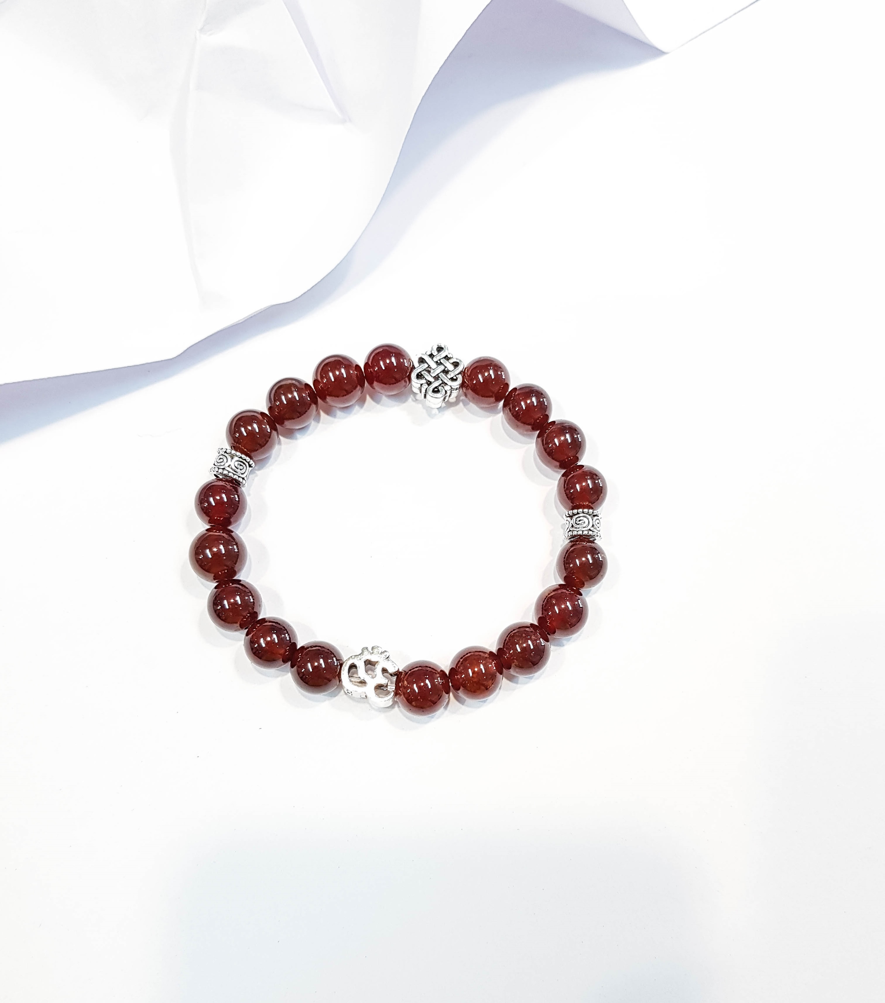 Vòng tay phong thủy Mã Não đỏ 6mm + 3 lu ngọc by ANQLO được chế tác 100% từ đá mã não tự nhiên, Đá mã não có tác dụng giảm căng thẳng, lo lắng,