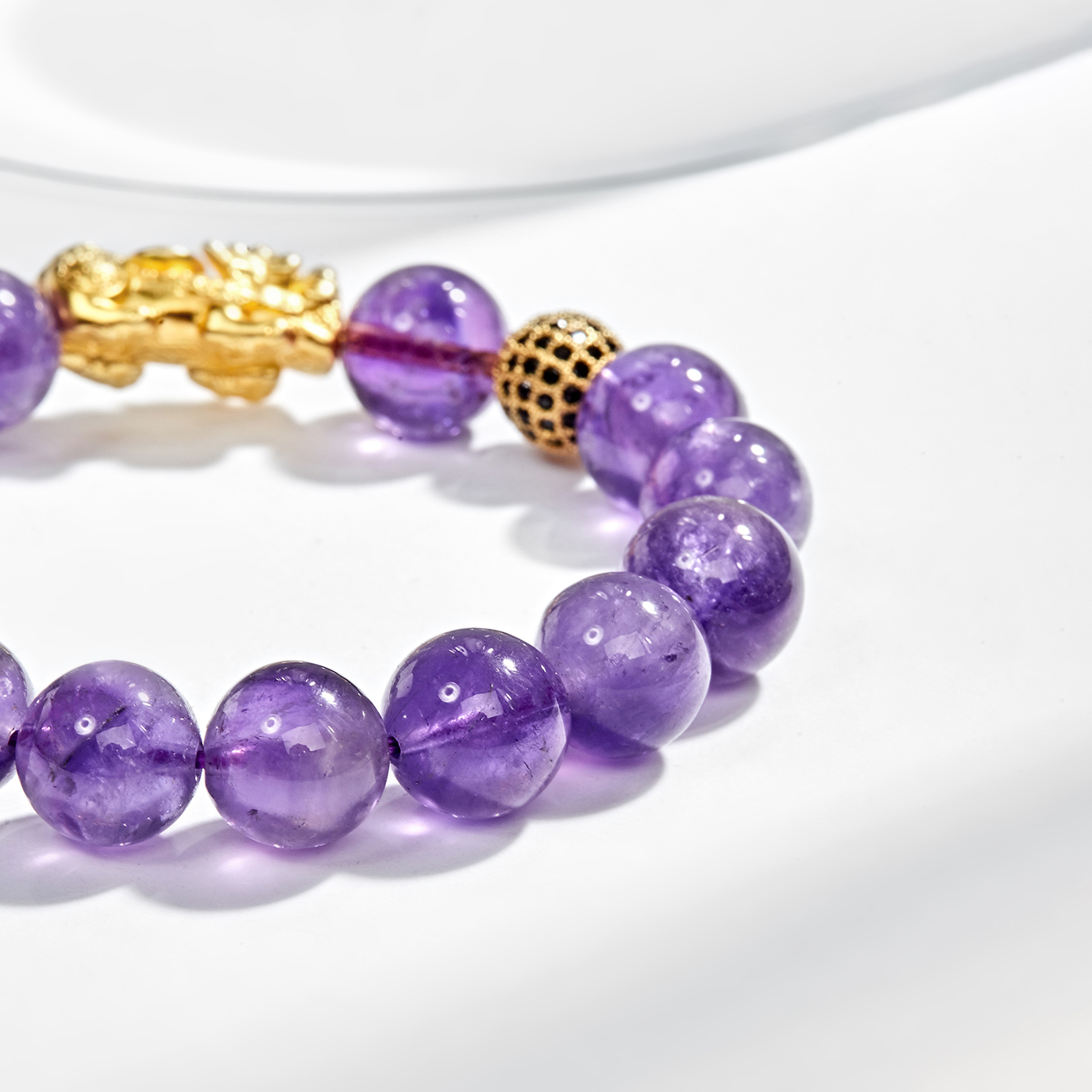 ✨Vòng Tay Nam Đá Thiên Nhiên Phối Charm Tỳ Hưu Bạc Mạ Vàng 24K 12mm - Ngọc Quý Gemstơnes