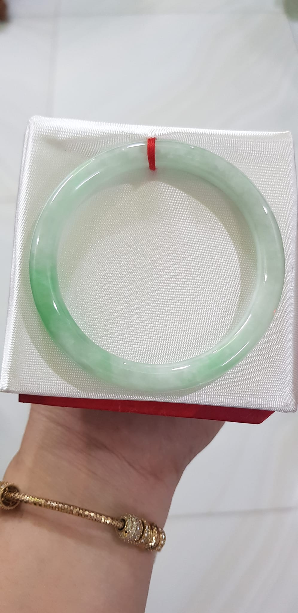 Vòng tay nữ đá ngọc Cẩm Thạch tự nhiên 48mm trắng lý sịn bóng đẹp vòng kiểm định Pnj No 209314 #48mm