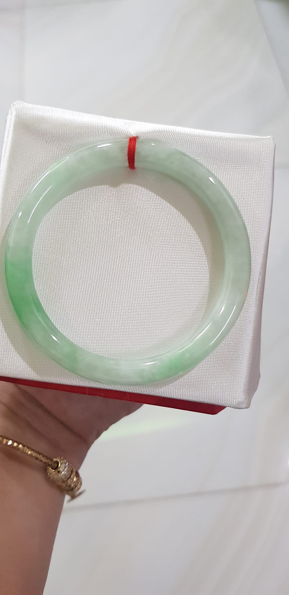 Vòng tay Nữ Đá Ngọc cẩm thạch tự nhiên kiểm định có chứng nhận Pnj No 182179 Đậu Lý Ni 50mm Sunny Q8