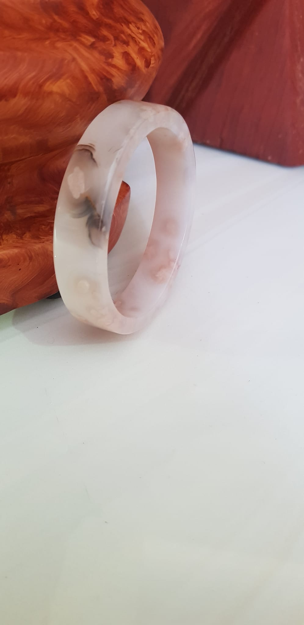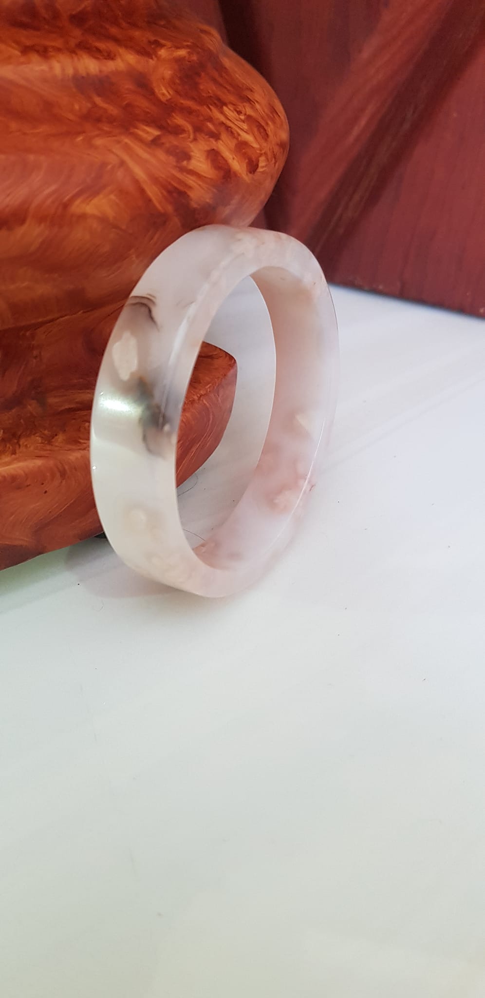 Vòng tay Nữ Bản Hẹ Mới Mã Não Bông Tuyết Hồng nhẹ trắng Ni 53mm Cao 11mm dầy 7mm Nữ 52kg - 55kg đeo