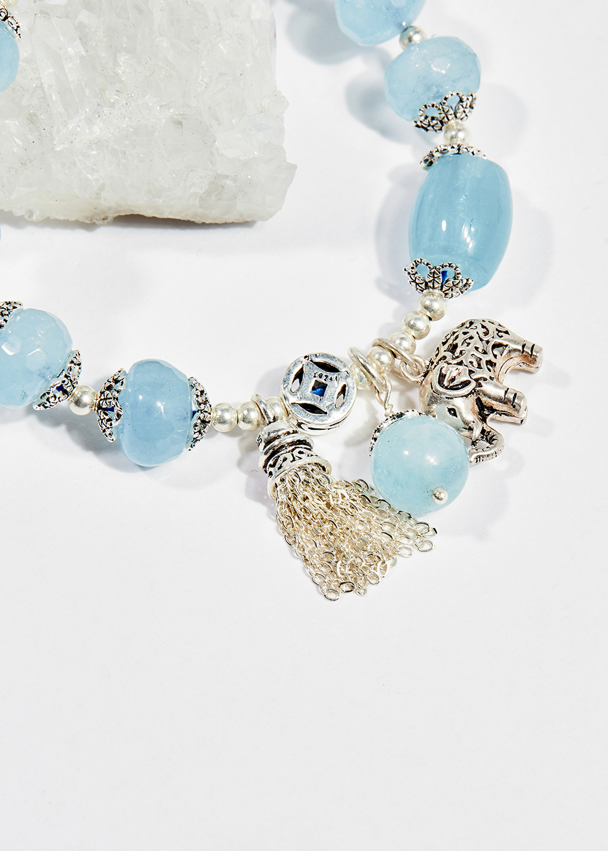 VÒNG TAY ĐÁ CHALCEDONY : Chalcedony sở hữu hoa văn và màu sắc đặc biệt cùng hiện tượng tán sắc vô cùng thú vị, rất ít xuất hiện ở những loại đá khác. Vòng tay Đá Chalcedony mang đến điềm lành, giúp nuôi dưỡng và ổn định tinh thần lẫn tình cảm ở chủ nhân, là món quà mà bất kì ai cũng mong muốn sở hữu. CÔNG DỤNG VÀ Ý NGHĨA CỦA ĐÁ CHALCEDONY: - Về mặt phong thủy - Chalcedony là viên đá của niềm vui, sự hân hoan và đức tính trung thực ở con người. - Kích thích sự hưng phấn, cảm giác lạc quan, yêu đời ở người đeo, dẫn lối cho họ đến thành công. - Lan tỏa nguồn năng lượng tích cực, giúp chủ nhân thu hút nhiều may mắn và tiền bạc trong cuộc sống. - Về mặt sức khỏe - Chalcedony giúp cân bằng và ổn định cảm xúc, được ứng dụng để phòng chứng trầm cảm, rối loạn tiến đình và một số vấn đề liên quan đến thần kinh khác. - Đeo đá thường xuyên sẽ giúp bạn có giấc ngủ ngon và tràn đầy năng lượng cho một ngày mới. - Hợp mệnh - Chalcedony tím phù hợp với người mệnh Hỏa (theo tương hợp) và mệnh