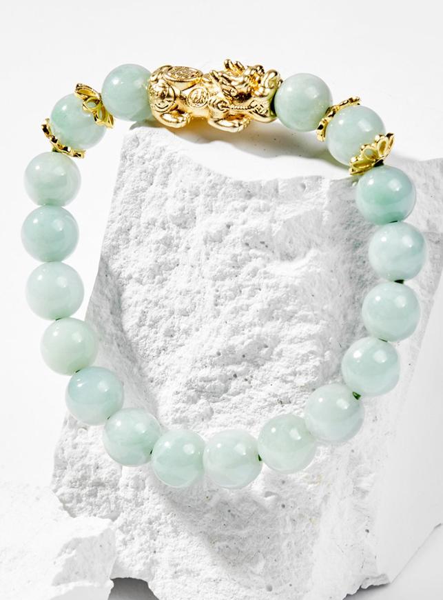 Vòng tay phong ngọc bích mạ vàng 18k đem lại may mắn an lành, toát lên vẻ cao sang phú quý