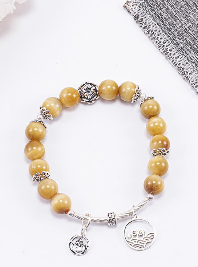 Vòng tay thiên nhiên đá mắt hổ vàng tâm phối charm bạc - Hợp mệnh kim, thổ | Ngọc Quý Gemstones |