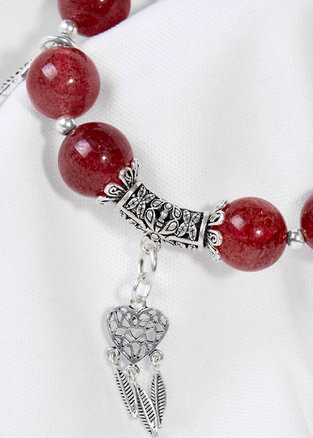 Thạch anh dâu tây mix charm bạc. Vòng đá Thiên Cầm