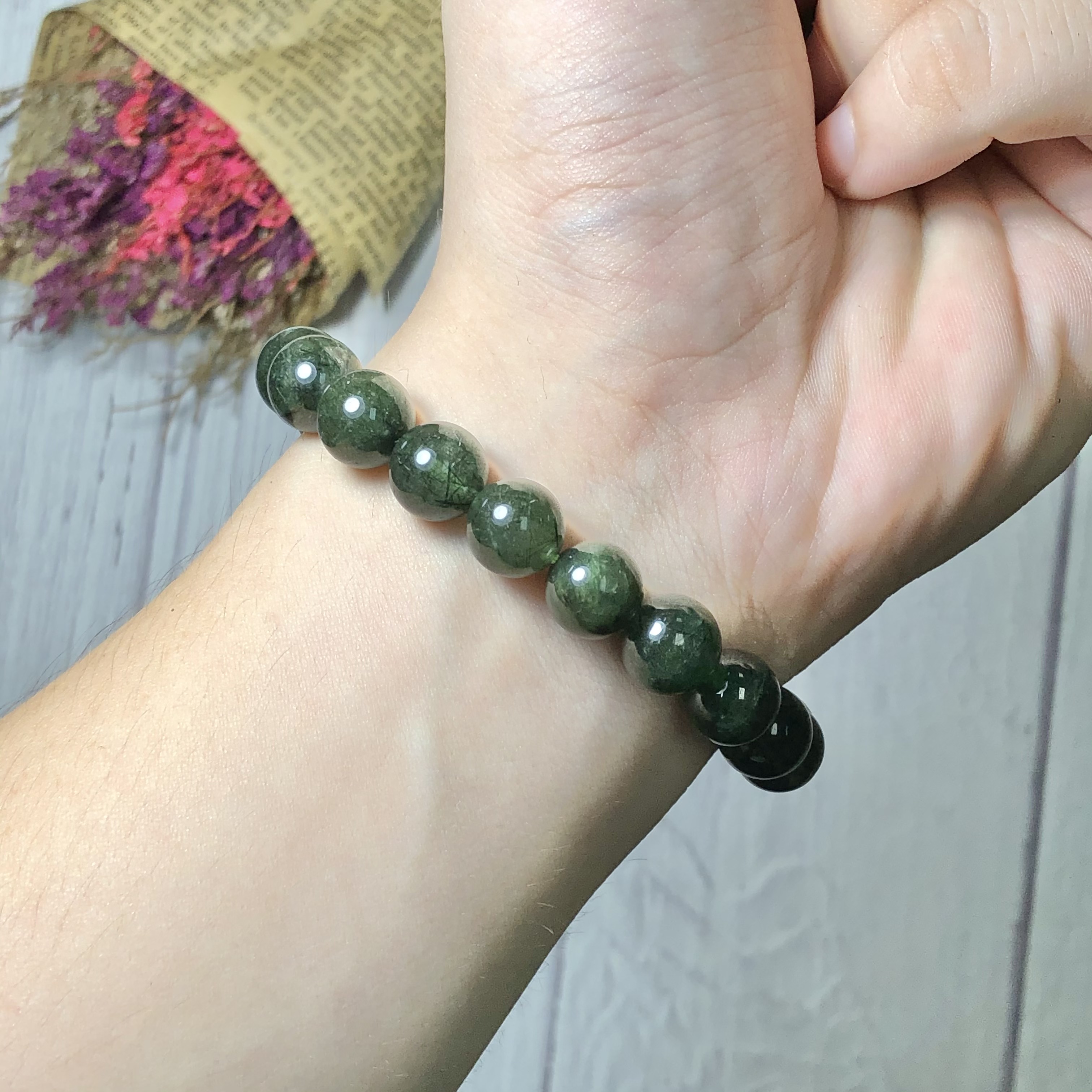 Vòng tay Thạch Anh Tóc xanh 9mm chuẩn 4A - Chất liệu: Thạch Anh Tóc Xanh tự nhiên. - Màu sắc: Xanh tự nhiên (không qua xử lý). - Kích thước: 9mm - Chuẩn: 4A - Mã kiểm định: 161623