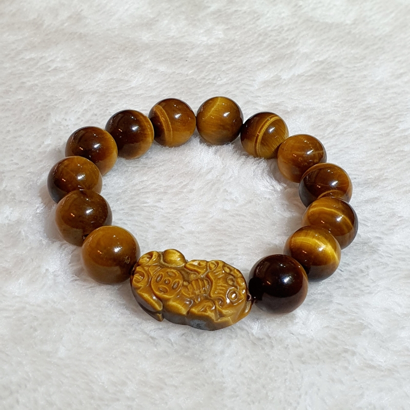 ✨Vòng Tay Tỳ Hưu Đá Mắt Hổ Thiên Nhiên Vàng Nâu 14li - VTCT0022