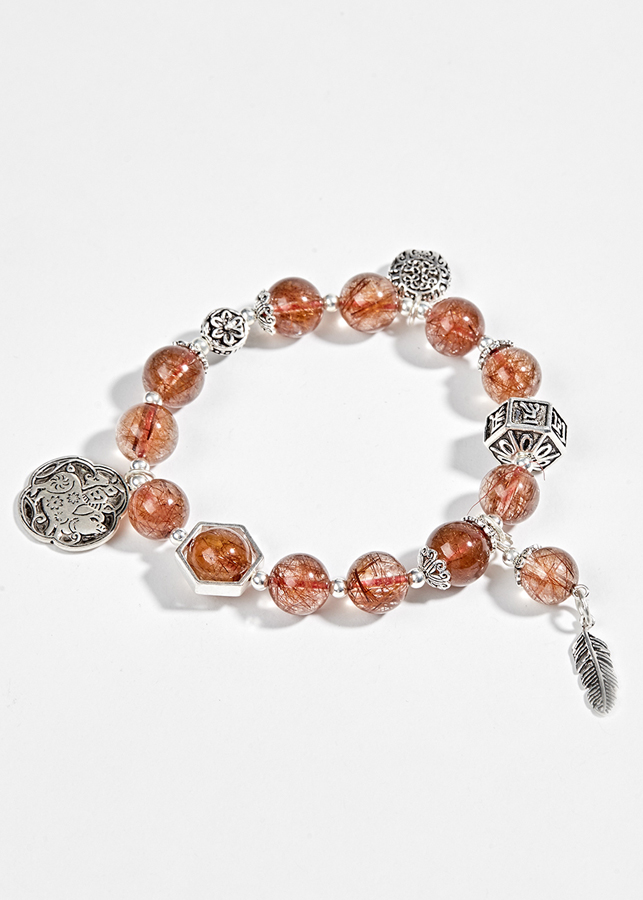 Vòng Thạch Anh Tóc Đỏ Phối Charm Heo Bạc (10mm)