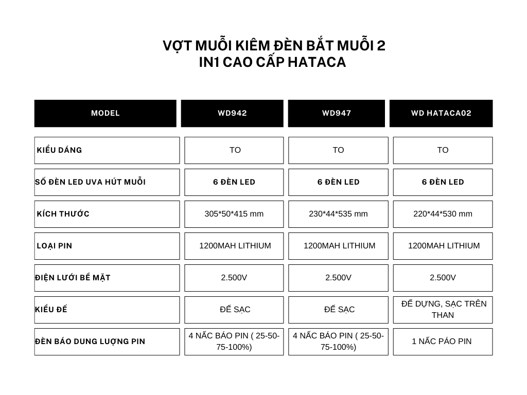 Mua tại TiktokVợt muỗi Hataca 2 trong 1 cao cấp, vừa là vợt muỗi vừa là đèn diệt muỗi thu hút muỗi đến tự động Trang bị 6 đèn led, là ánh sáng thu hút muỗi đến và diệt muỗi với điện áp diệt muỗi lên đen 2500v. Sản phẩm bao gồm: 1 x Vợt muỗi 1 x Đế sạc 1 x Dây USB