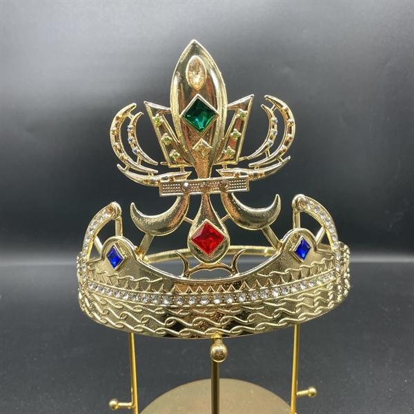 ✨Vương miện nam chóp cao 13cm vàng đính đá màu