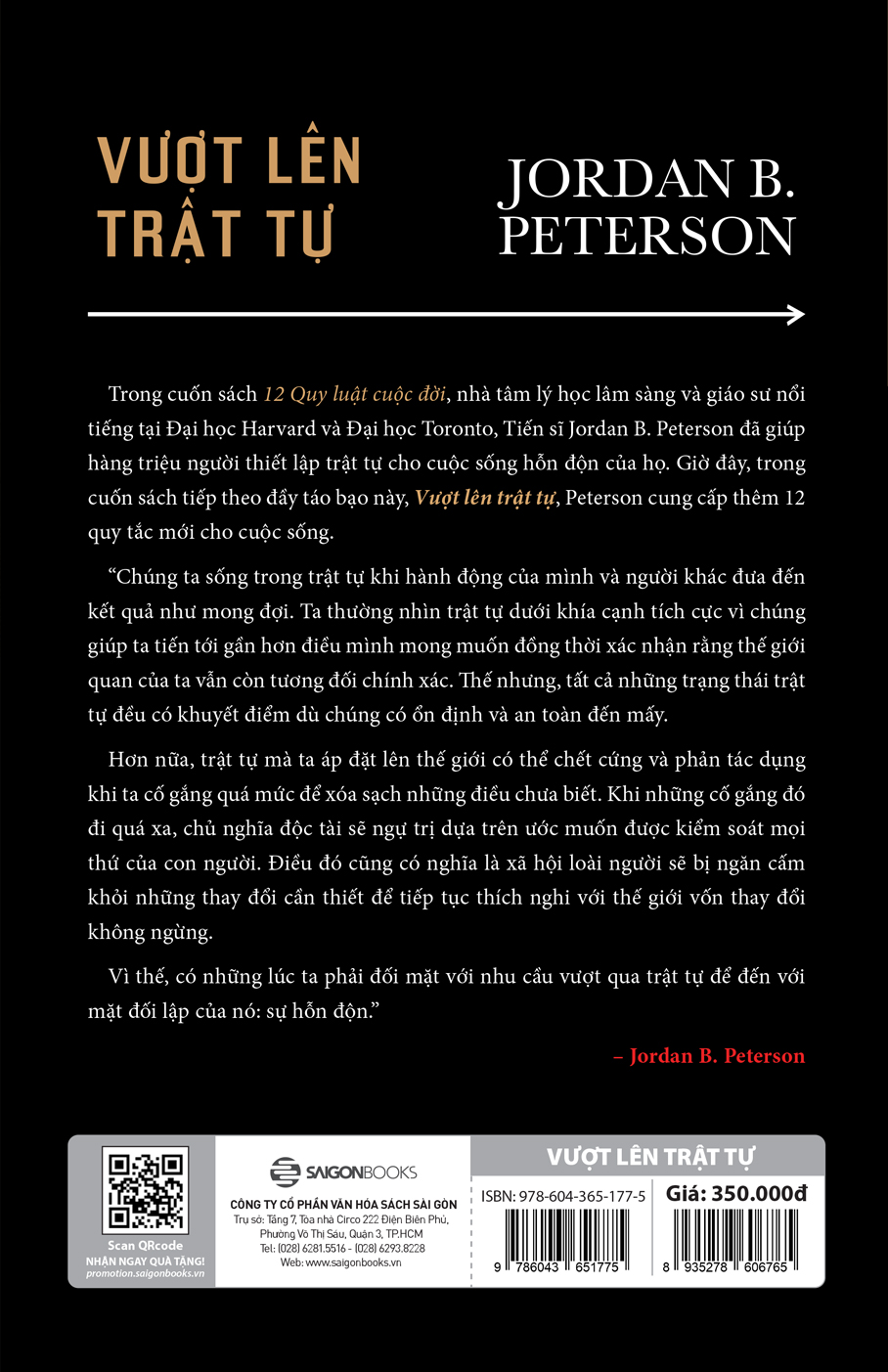 Vậy là cuốn sách tiếp theo Vượt Lên Trật Tự của Giáo sư Jordan Peterson ra đời như một liều thuốc giải giúp bạn giải quyết những biến động, rối loạn và bất định. Vẫn là 12 quy luật, nhưng khác với “12 rules for life”, 12 bộ quy tắc như một “cứu cánh” giúp bạn nhận ra rằng trật tự thực ra rất mong manh, rằng “Con người vốn yếu đuối. Vì thế, cuộc sống luôn khó khăn và đau khổ thì đầy rẫy.” Và “để xoa dịu những khổ đau đó (như đảm bảo mọi người đều có đủ thức ăn, nước sạch và một nơi ở đàng hoàng, sạch sẽ), chúng ta cần đến sự mạnh dạn sáng tạo, nỗ lực và năng lực.”