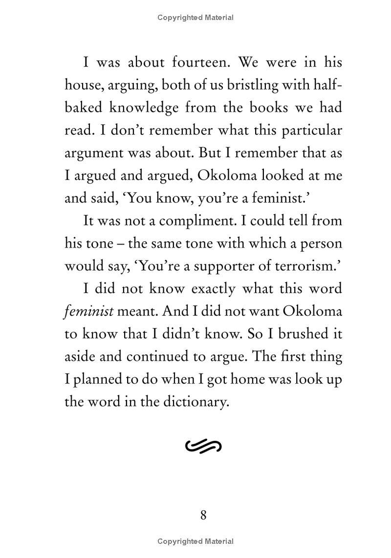 In this personal, eloquently-argued essay--adapted from the much-admired TEDx talk of the same name--Chimamanda Ngozi Adichie offers readers a unique definition of feminism for the twenty-first century, one rooted in inclusion and awareness. Drawing extensively on her own experiences and her deep understanding of the often masked realities of sexual politics, here is one remarkable author's exploration of what it means to be a woman now--and an of-the-moment rallying cry for why we should all be feminists.