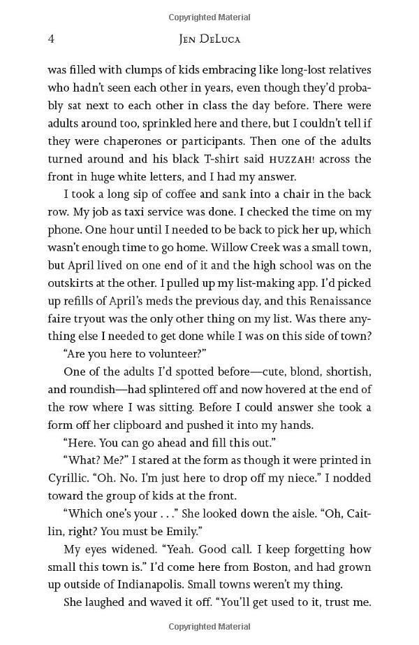 Emily's moved to the small Maryland town of Willow Creek for the summer to help her sister recover from an accident. But when teenage niece Caitlin volunteers for the local Renaissance Faire, Emily's suddenly signing up too as a . . . tavern wench.