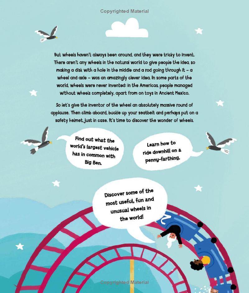 Discover how wheels make the world go round! This fact-packed book takes young readers on a colorful journey through the subject of wheels of all kinds, from Roman chariots to driverless cars, via roller coasters, cogs and gears, monster trucks, and much more.