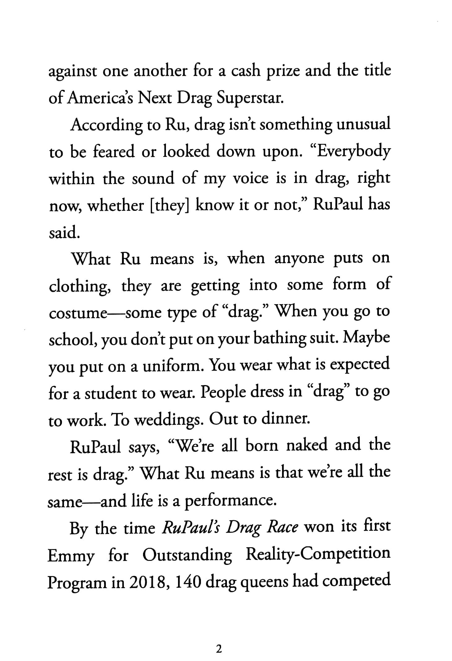 RuPaul Andre Charles always knew he was meant to be a performer. Even as a young child, he loved to dress up and imitate the glamorous women he saw on television. When he turned fifteen, he began studying theater in a performing arts school in Atlanta and never looked back. Ru developed his drag-queen personality and launched his career in the 1980s. He now hosts and judges the widely popular and long-running show RuPaul's Drag Race, which has raised the profile of the art of drag, and drag queens around the world.