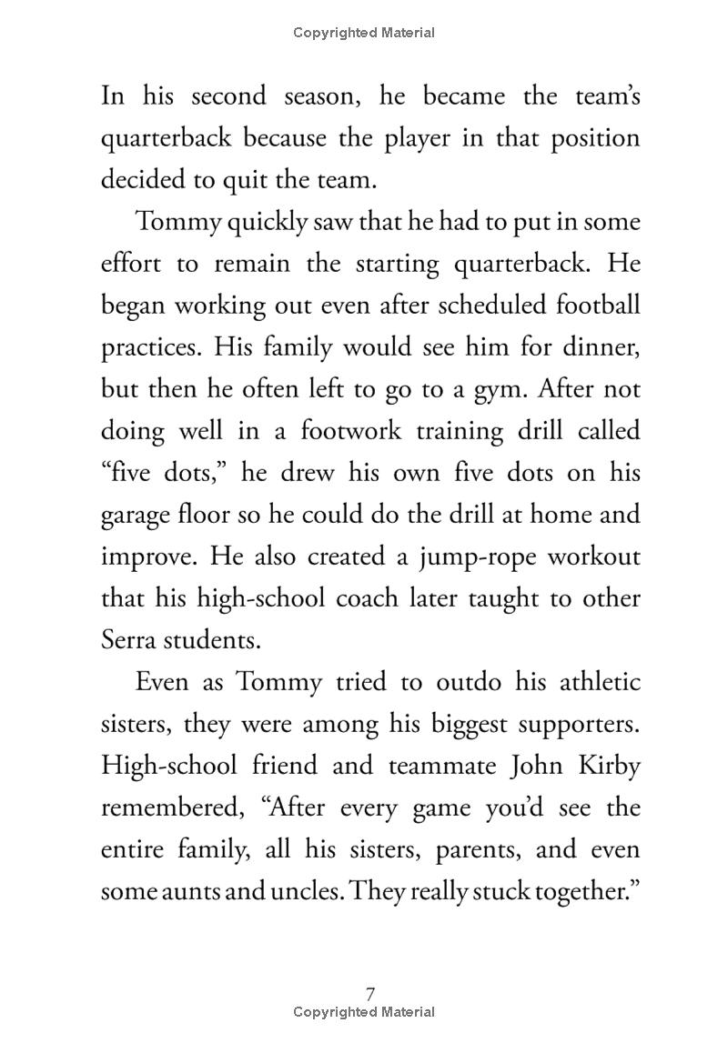 On February 7, 2021, Tom Brady lifted the Vince Lombardi Trophy into the air for the seventh time in his career. After winning the Super Bowl six times with the New England Patriots, this was Brady's first win with his new team, the Tampa Bay Buccaneers. The record-breaking win further solidified what many people had already believed for two decades: Tom Brady is the GOAT: Greatest Of All Time. This moving story details the life of Tom Brady and the victories that led him to become the 264-game-winning NFL quarterback we cheer for today.