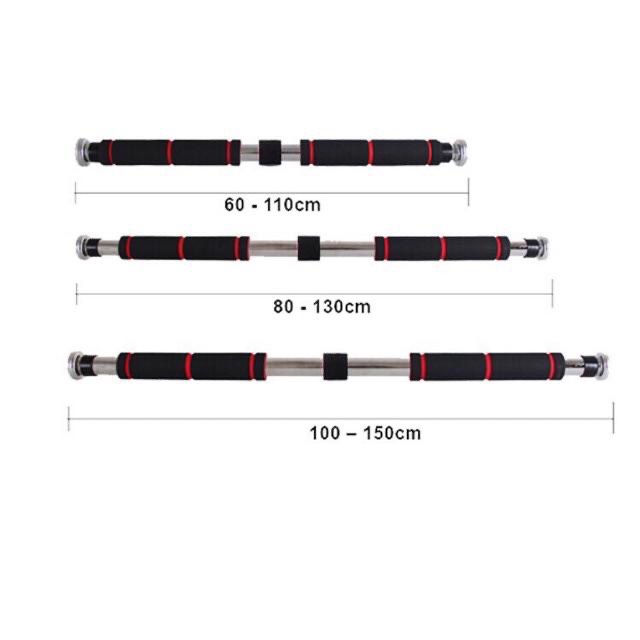 Mô Tả Sản Phẩm: Xà đơn gắn cửa cải tiến có chốt chống xoay (60cm-100cm)(82cm-130cm)(116cm-150cm) (Khách lựa chọn kích thước) Xà đơn có chốt chống xoay: Chiều dài : 62-100cm 82-130cm và 100-150cm Mẫu 62-100cm