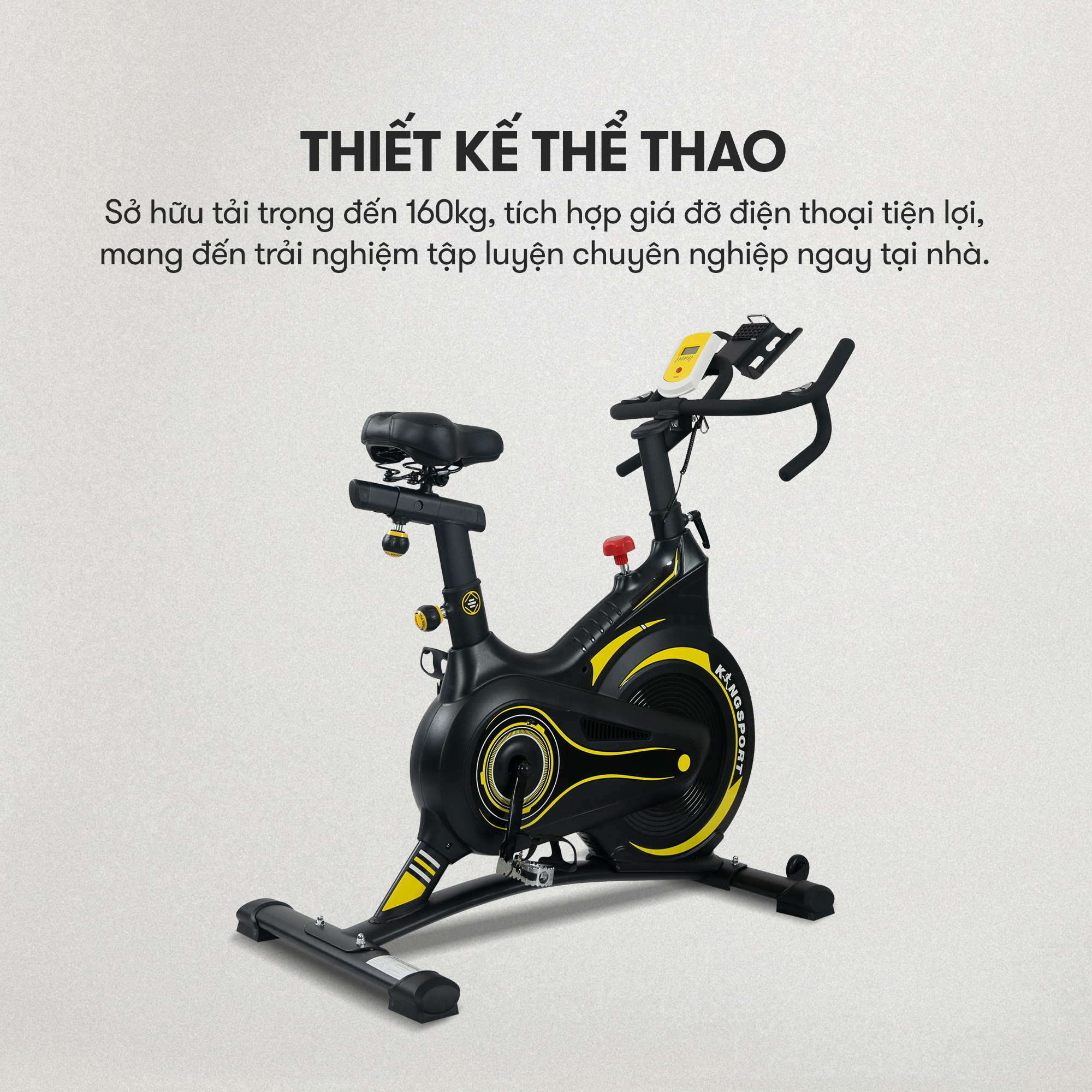 Được thiết kế tinh tế và mạnh mẽ, chiếc xe đạp tập KingSport Active E01 mang đến một trải nghiệm kết hợp tập luyện hoàn hảo giữa thể chất và tinh thần. Với thiết bị