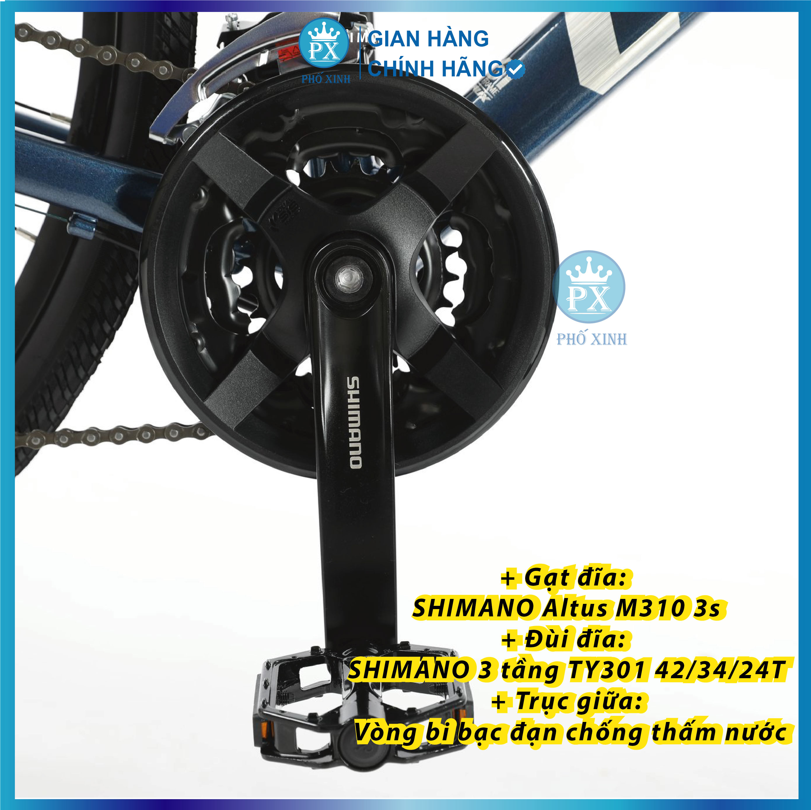 - Đùi đĩa: S H I M A N O 3 tầng TY301 42/34/24T