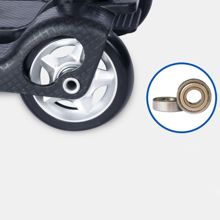 Bánh xe giúp cho bạn dễ dàng lái chuyển hướng linh hoạt có khóa để bạn có thể tạm dừng những nơi có địa hình dốc, không bị trôi xe +Bánh xe được chế tạo