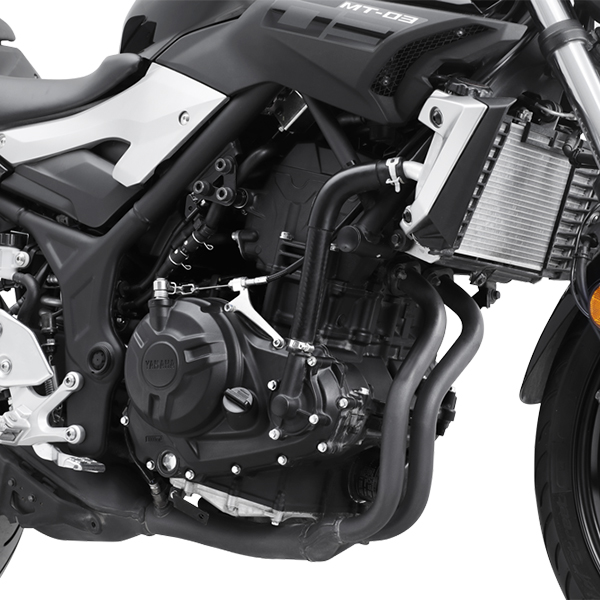 Hông bình xăng, bình xăng và bộ tản nhiệt được thiết kế với từng điểm nhấn riêng nhưng kết hợp tổng thể rất hài hòa và chặt chẽ. Điểm thiết kế này cùng với tư thế lái thẳng đứng đã góp phần mở rộng tầm nhìn của người lái một cách hiệu quả. Những điểm tiện ích trên cùng với họng hút gió với logo MT giống như các dòng MT07, MT-09 tạo nên sự kết nối liền mạch với các dòng xe phân khối lớn hơn trong series xe MT.