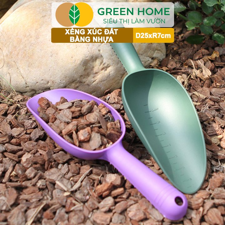 ✨Xẻng Xúc Đất Greenhome, D25cm, Dụng Cụ Làm Vườn ,Chất Liệu Nhựa, Siêu Bền, Dễ Vệ Sinh, Có Chia Vạch Tiện Lợi