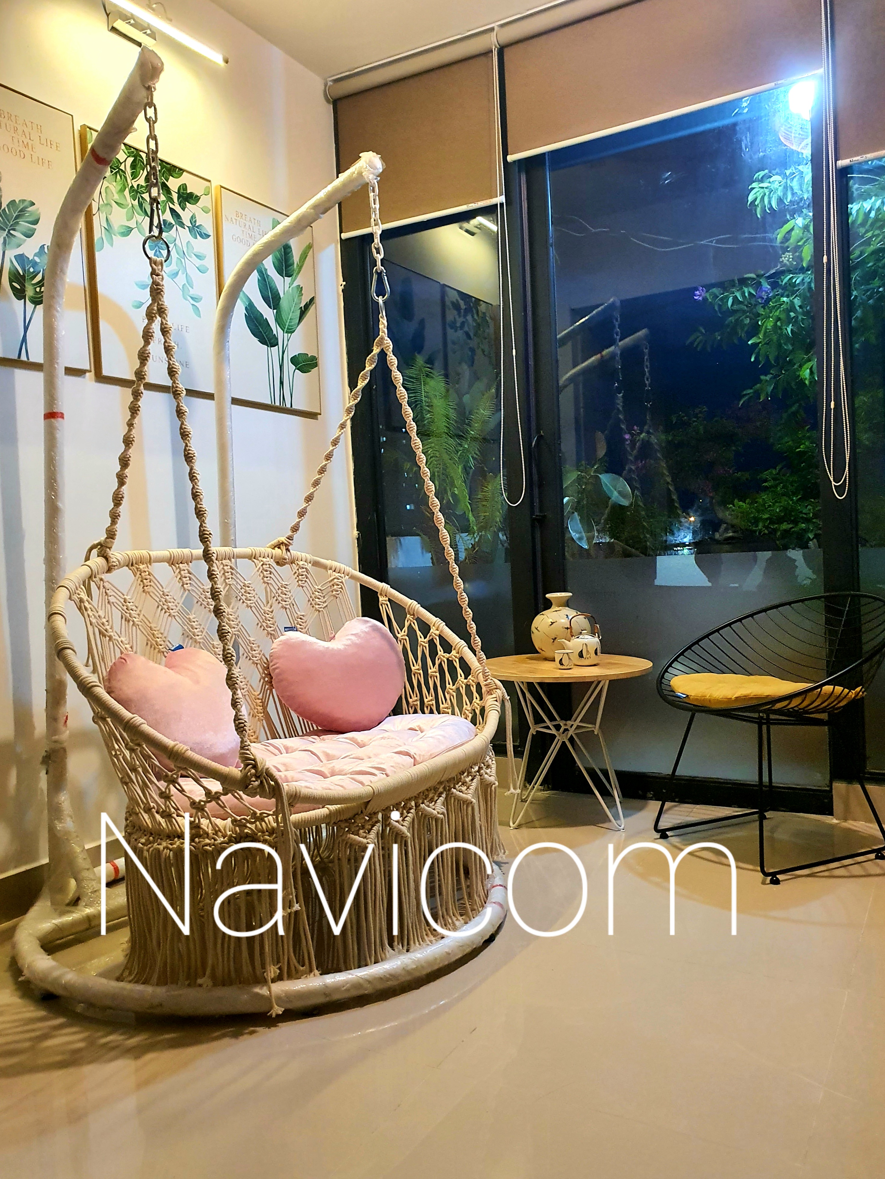 - Lồng xích đu sợi cotton được đan xương cá đẹp mắt và thẩm mỹ hoàn toàn thủ công