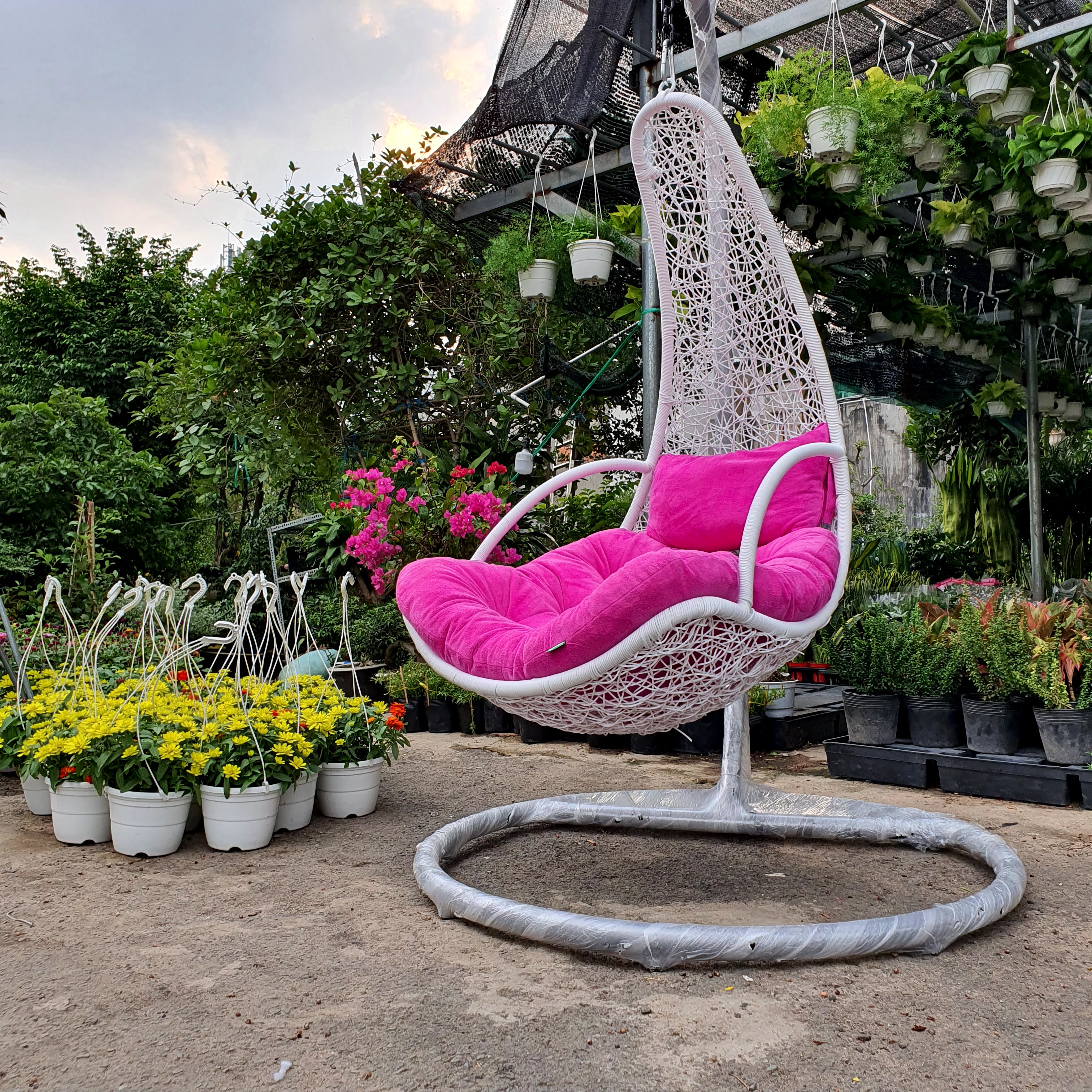 Bộ sản phẩm gồm : + Bộ nệm và 02 gối hình trái tim màu hồng + Thân lồng xích đu được sơn tĩnh điện và được đan nhựa giả mây màu hồng như hình