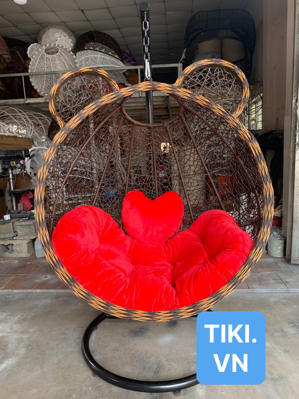 Bộ sản phẩm gồm : + Bộ nệm và 02 gối hình trái tim màu hồng + Thân lồng xích đu được sơn tĩnh điện và được đan nhựa giả mây màu hồng như hình