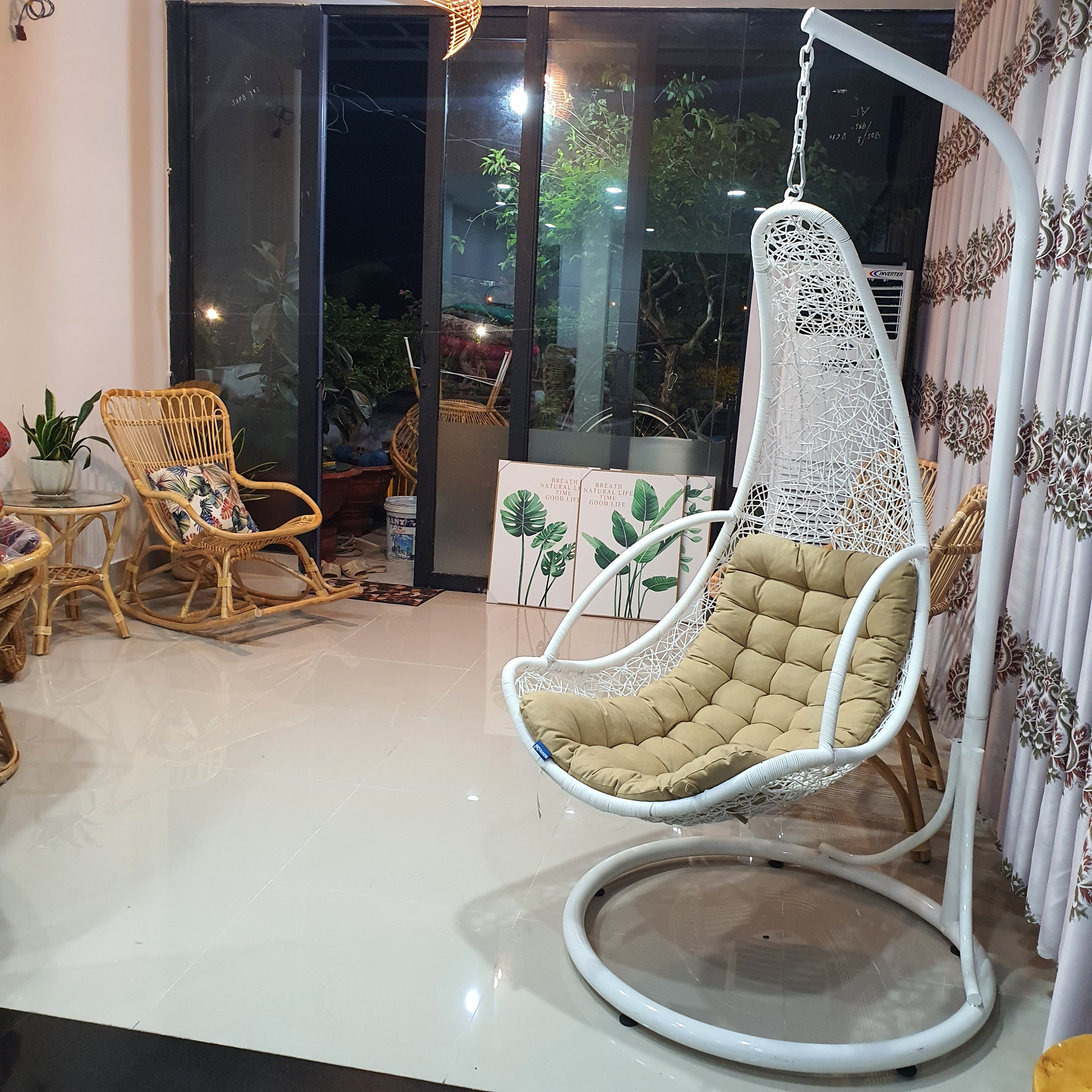 Bộ sản phẩm gồm : 01 xích đu mây + chân sắt + Bộ nệm như hình ảnh mô tả Với đồ nội thất làm từ mây tre đan bạn có thể bày trí ở