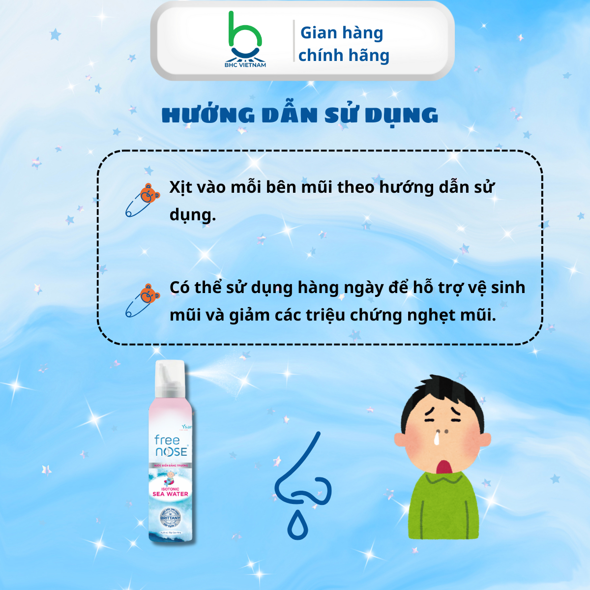 Xịt Mũi Free Nose Đẳng Trương Vệ Sinh Mũi Hằng Ngày Dành Cho Trẻ Sơ Sinh Tên sản phẩm: Free Nose Đẳng Trương Dạng bào chế: Dung dịch xịt mũi Quy cách đóng gói: Chai 120 ml Xuất xứ: Tây Ban Nha Hạn sử dụng: 36 tháng Tiêu chuẩn: TCCS, GMP Công Dụng Nổi Bật: Vệ sinh mũi hằng ngày giúp làm sạch niêm mạc mũi, hỗ trợ điều trị các vấn đề về mũi. Hỗ trợ điều trị viêm mũi họng, viêm xoang, và viêm mũi tắc nghẽn. Giảm tình trạng khô mũi, khàn tiếng do niêm mạc mũi bị khô. Phù hợp với các bệnh lý liên quan đến tai mũi họng và khoa Nhi. Thành Phần Chính: Nước biển đẳng trương (Natri clorid 0,9%) kết hợp với nước tinh khiết giúp vệ sinh mũi hiệu quả, làm loãng dịch nhầy và giảm tắc nghẽn. Đối Tượng Sử Dụng: Trẻ sơ sinh, trẻ em, và người lớn cần vệ sinh mũi hoặc hỗ trợ điều trị các bệnh lý về mũi, xoang, tai mũi họng. Hướng Dẫn Sử Dụng: Xịt vào mỗi bên mũi theo hướng dẫn sử dụng. Có thể sử dụng hàng ngày để hỗ trợ vệ sinh mũi và giảm các triệu chứng nghẹt mũi. Lưu Ý Khi Sử Dụng: ️ Để xa tầm tay trẻ em. ️ Sản phẩm này không phải là thuốc và không có tác dụng thay thế thuốc chữa bệnh. Vì sao nên chọn Xịt Mũi Free Nose Đẳng Trương? Vệ sinh mũi nhẹ nhàng, an toàn: Dung dịch nước biển đẳng trương giúp làm sạch niêm mạc mũi, loại bỏ bụi bẩn và vi khuẩn. Giảm nghẹt mũi, hỗ trợ điều trị viêm xoang: Giúp làm loãng dịch nhầy, cải thiện tình trạng tắc nghẽn mũi do cảm cúm, viêm mũi, viêm xoang. Phù hợp cho trẻ sơ sinh và mọi đối tượng: An toàn cho bé từ sơ sinh, trẻ nhỏ, người lớn cần vệ sinh mũi thường xuyên. Sản phẩm nhập khẩu từ Tây Ban Nha: Được sản xuất theo tiêu chuẩn GMP, đảm bảo chất lượng và hiệu quả. FREE NOSE – Hỗ trợ bảo vệ đường hô hấp, giúp bé thở dễ dàng hơn! MUA NGAY Free Nose – Giải Pháp Vệ Sinh Mũi Hằng Ngày Cho Trẻ Sơ Sinh!
