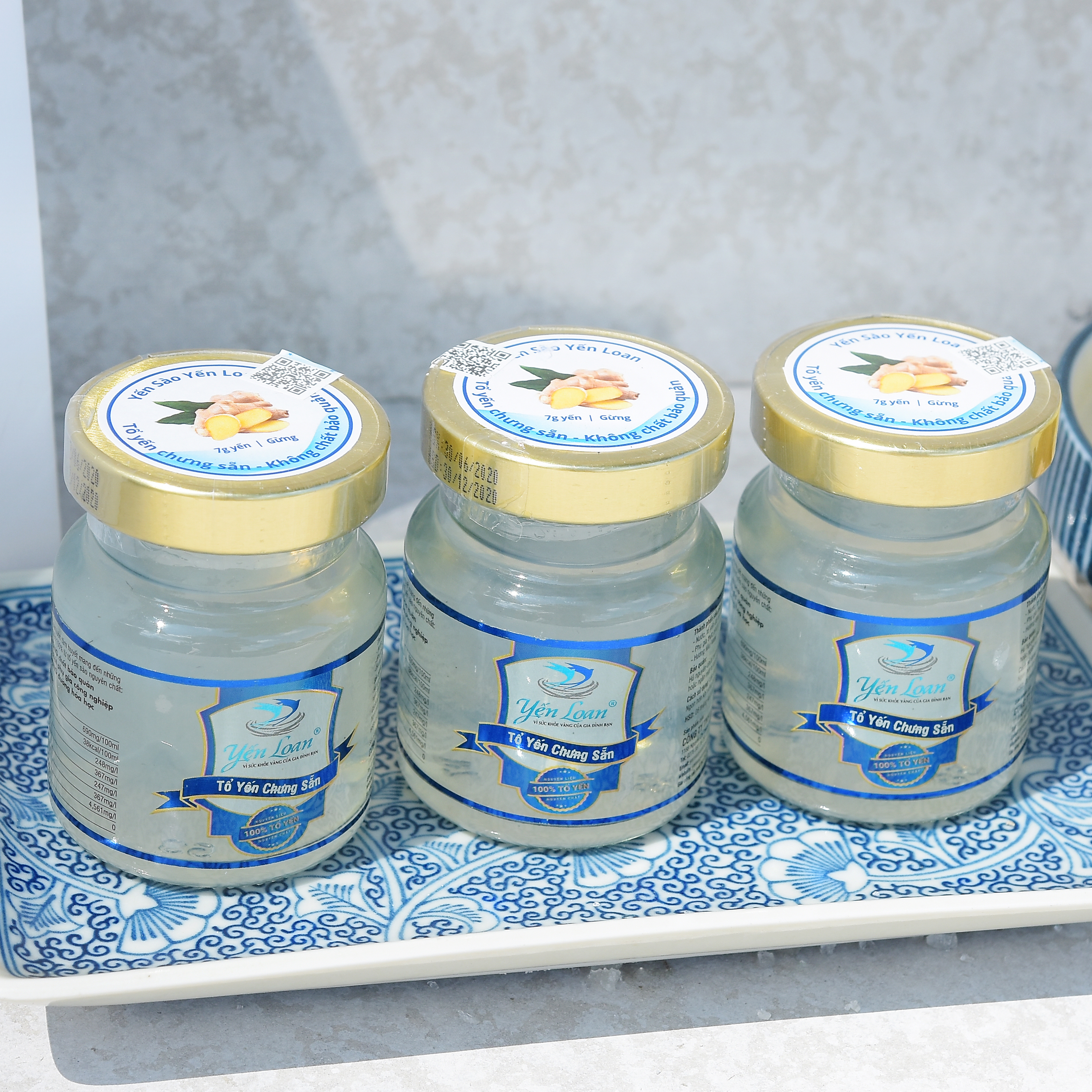 • Thành viên BCH Hiệp hội yến sào Việt Nam. Mô tả sản phẩm: Sản phẩm của Yến sào Yến Loan: KHÔNG chất bảo quản. KHÔNG chất phụ gia công nghiệp. KHÔNG đường hóa học. Nguyên liệu chế biến yến hũ chưng với gừng là: 7g yến sạch và gừng tươi. Hộp gồm 5 hũ yến chưng với gừng, mỗi hũ 70ml. Công dụng: