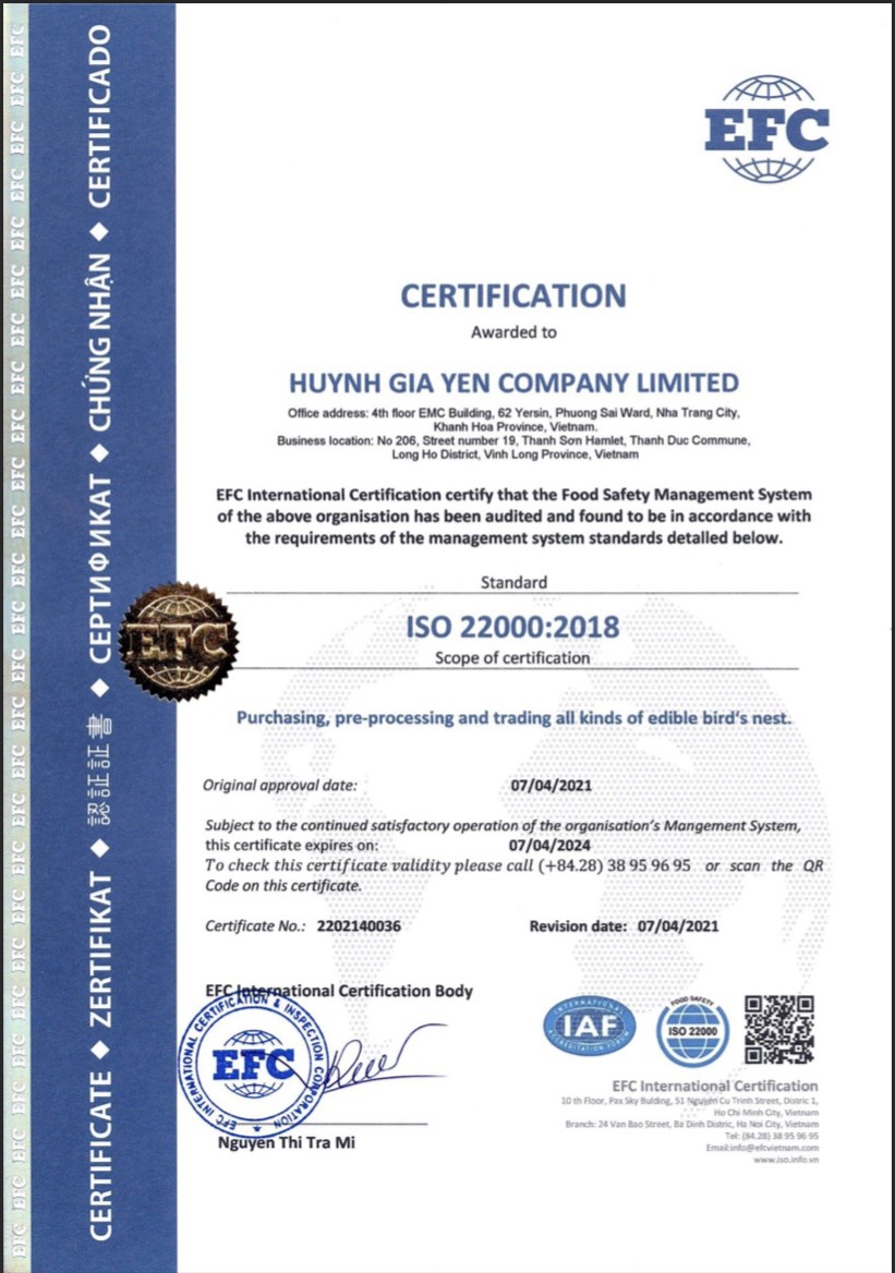 Yến Sào Hải Yến – Tiêu Chuẩn Yến Sào Thượng Hạng Tại Mỹ (Certified FDA & USDA)