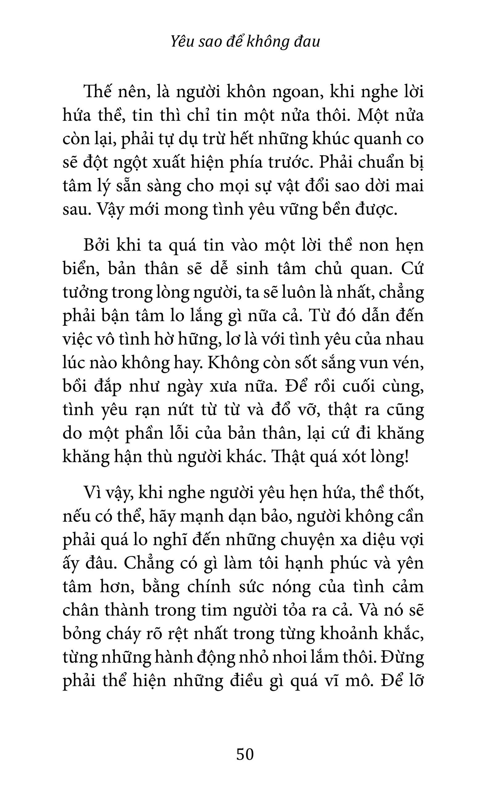 Tin rằng “Yêu sao để không đau” sẽ đồng hành cùng bạn đi qua những năm tháng đơn độc lẻ loi, bước vào tình yêu không sợ hãi, rời khỏi tình yêu cũng thật rạng rỡ và can đảm viết tiếp hành trình mới.